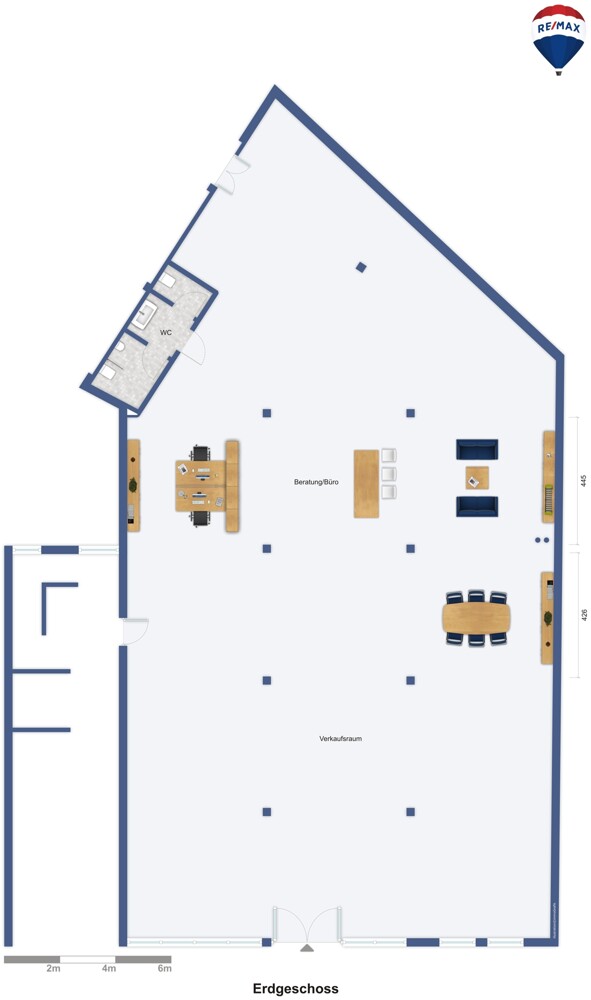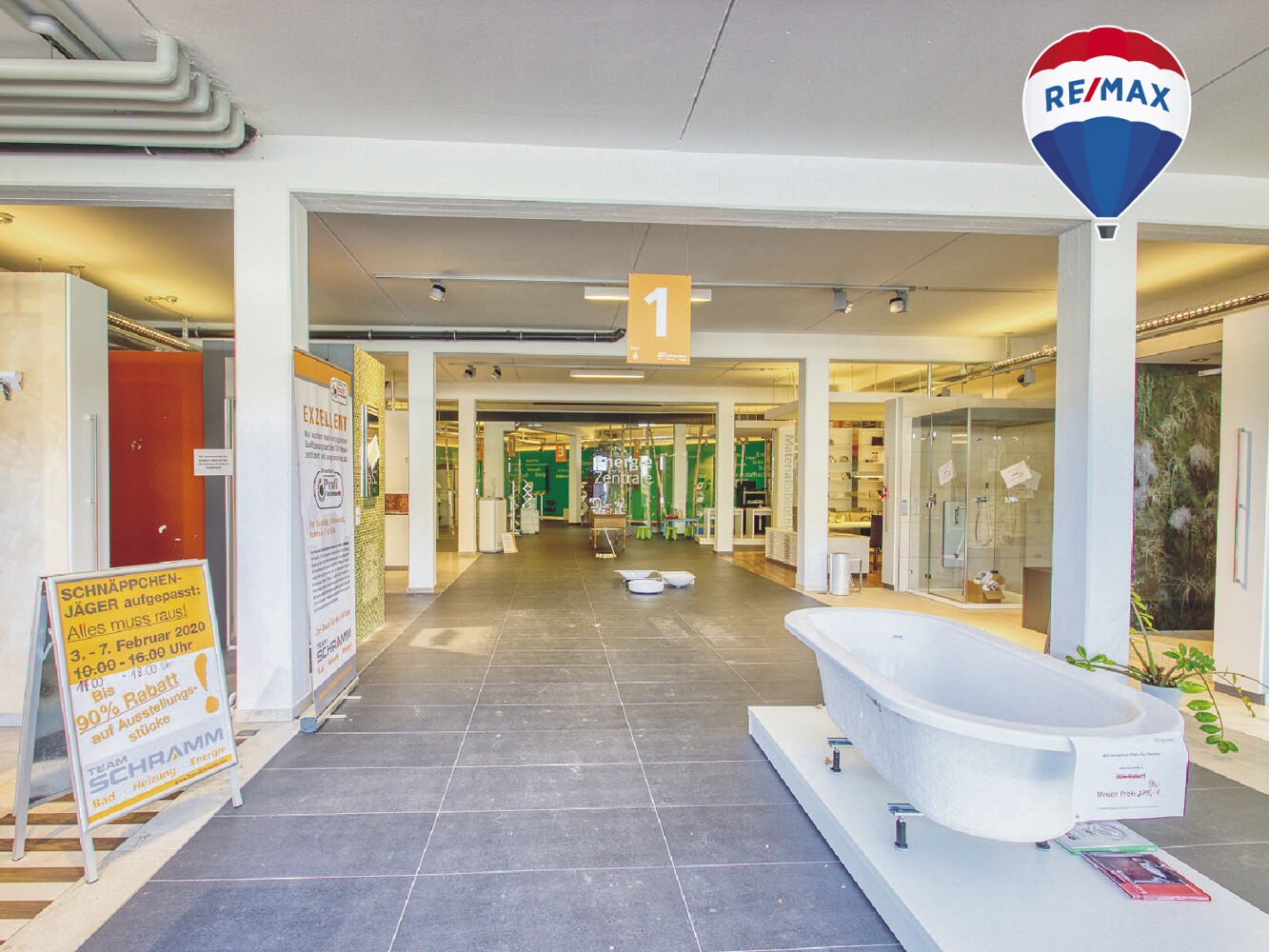 Mit einem Schaufenster von ca. 14m² bietet Ihnen diese Fläche die optimale Präsentation Ihrer Firma. Das innere zeichnet sich durch ein modernes und offenes Konzept aus, hier können Sie nach Ihren Bedürfnissen anpassen und gestalten. Zuletzt wurden die Räumlichkeiten als Badausstellung inkl. drei gekühlten Arbeitsbereichen genutzt.