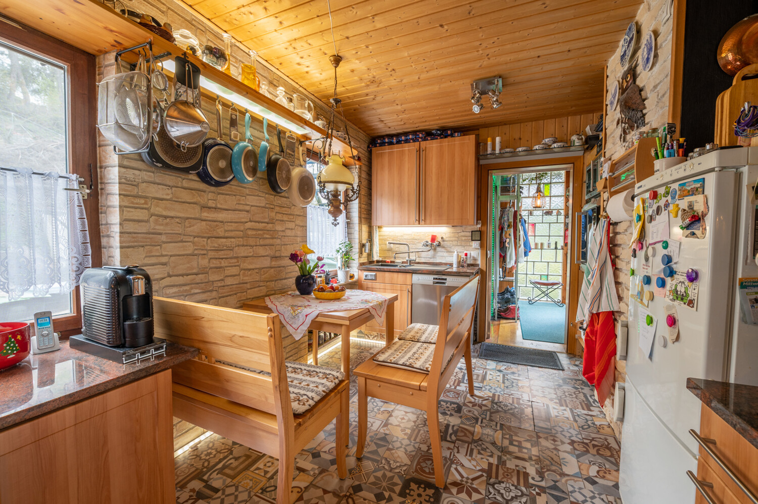 Das Hier-Wohnen verbindet sich inhaltlich mit dem Begriff Freiheit. Und mit dieser Freiheit – das auch etwas an Anarchie enthält – kultiviert man seine Unabhängigkeit: der vorhandene Holzvorrat reicht fünf Jahre. Nicht nur, dass 2.500 Liter Regenwasser hier gespeichert werden. Sie haben auch die Möglichkeit sich selbst ein Stück Unabhängigkeit zu schenken: sei es mit dem Pflanzen von Gemüse und Früchten. Sei es mit einer Photovoltaik-Anlage. – Die Sonne ist hier Ihre Wärmequelle.