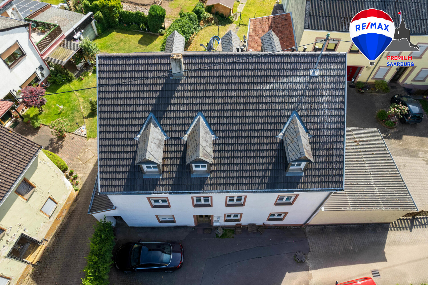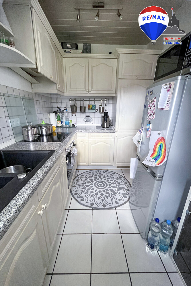 Im Ortskern von Serrig befindet sich die Dachgeschosswohnung auf einer Fläche von ca. 87 m^2 in einem 3-Parteien Haus. Vor dem Haus befindet sich ein Carport, welches Platz für zwei Autos bietet. Über einen gemeinsamen Treppenaufgang erreicht man die Eingangstür der Wohnung. Die Eigentumswohnung verfügt über eine kleine Einbauküche, die über das gemütliche Wohnzimmer zu erreichen ist. Des Weiteren gibt es ein großes Elternschlafzimmer und zwei geräumige Zimmer, die gut als Kinderzimmer oder auch Büro genutzt werden können. Das Badezimmer verfügt wie alle anderen Räume über ausreichend Tageslicht und ist mit einer Badewanne sowie einer Dusche ausgestattet. Ebenso gibt es noch einen kleinen Raum der Platz zum Verstauen bietet. Das Highlight der Wohnung ist der große Garten, welcher in drei Teile aufgeteilt wurde. So hat jede Partei einen eigenen Garten und einen zusätzlichen Abstellraum im Außenbereich.