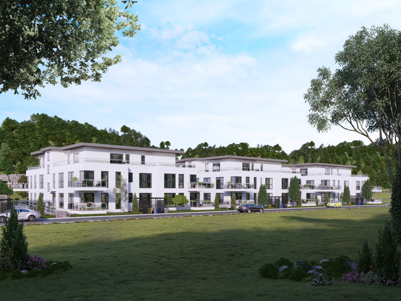 Die Außenanlagen werden ansprechend und naturnah gestaltet. Zusätzlich verspricht die effiziente und rohstoffschonende Bauweise ein dauerhaftes Wohlgefühl.