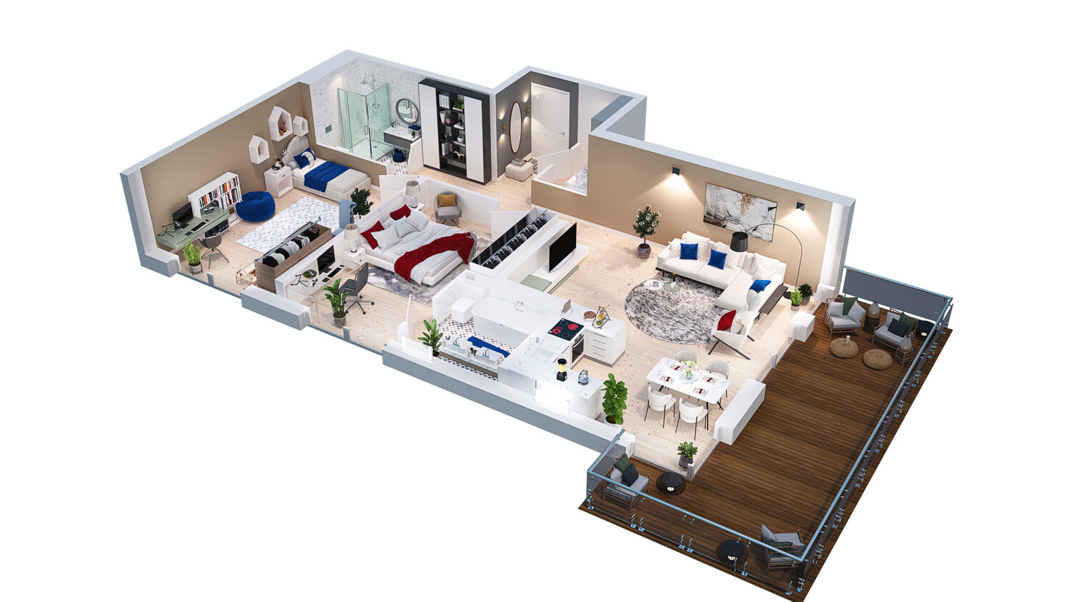 Auf 110,91 m² verteilt auf 3-Zimmer-Küche-Bad, Gäste-Bad und Abstellraum lässt es sich wunderbar leben. Dieser Wohnungstyp befindet sich sowohl im Erdgeschoss als auch im Obergeschoss und insgesamt somit 6x Verfügbar.