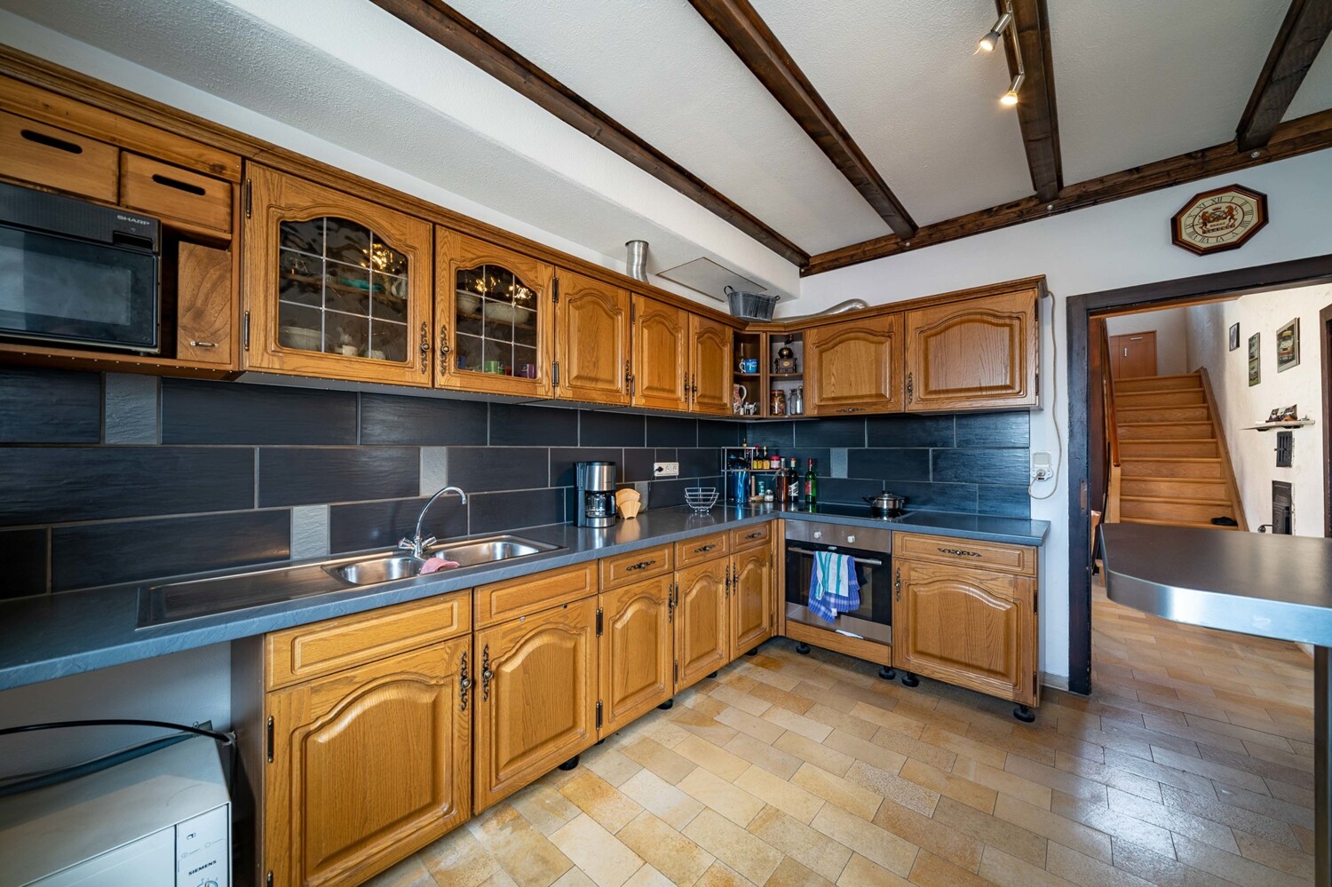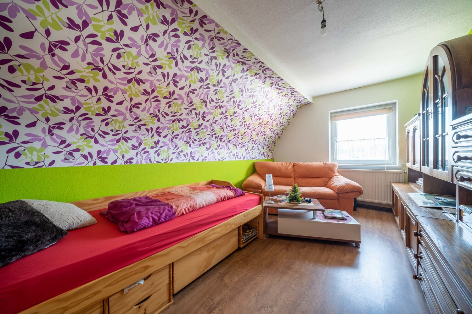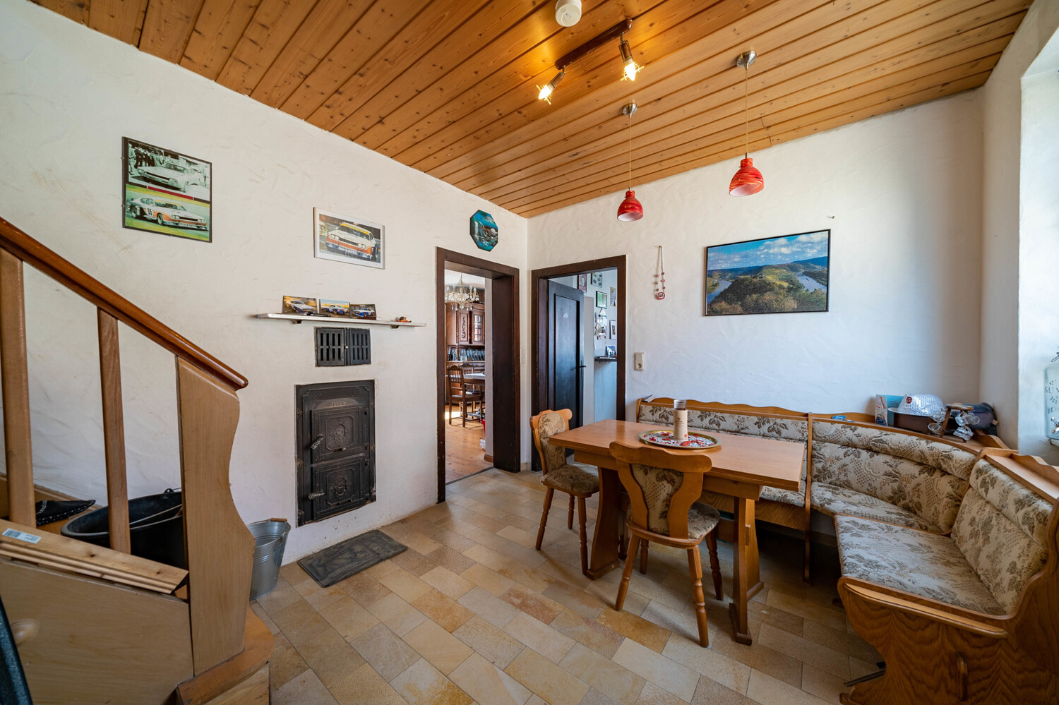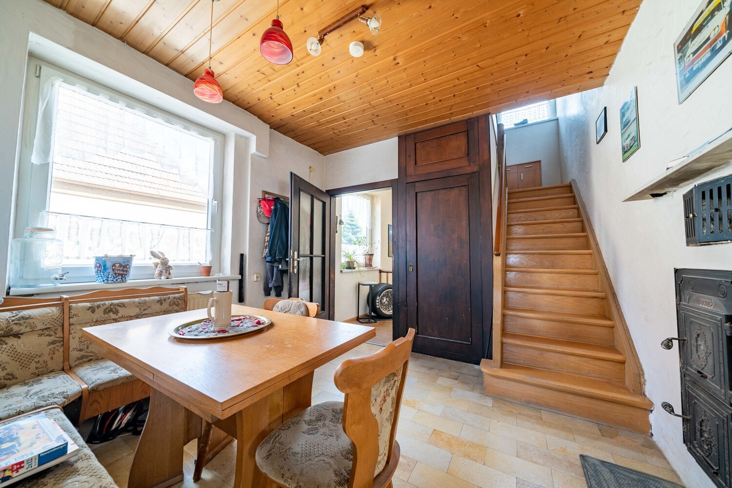 Das Highlight hier: ein Kachelofen, der das Ober-/ und Dachgeschoss mit beheizt.