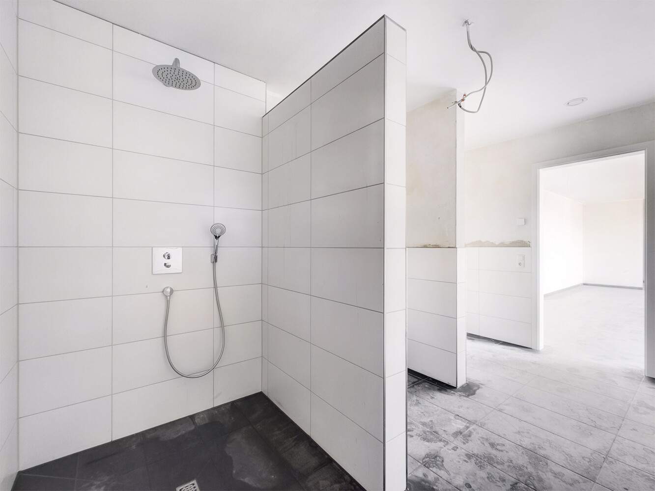 Die Böden werden mit Fliesen ausgestattet.