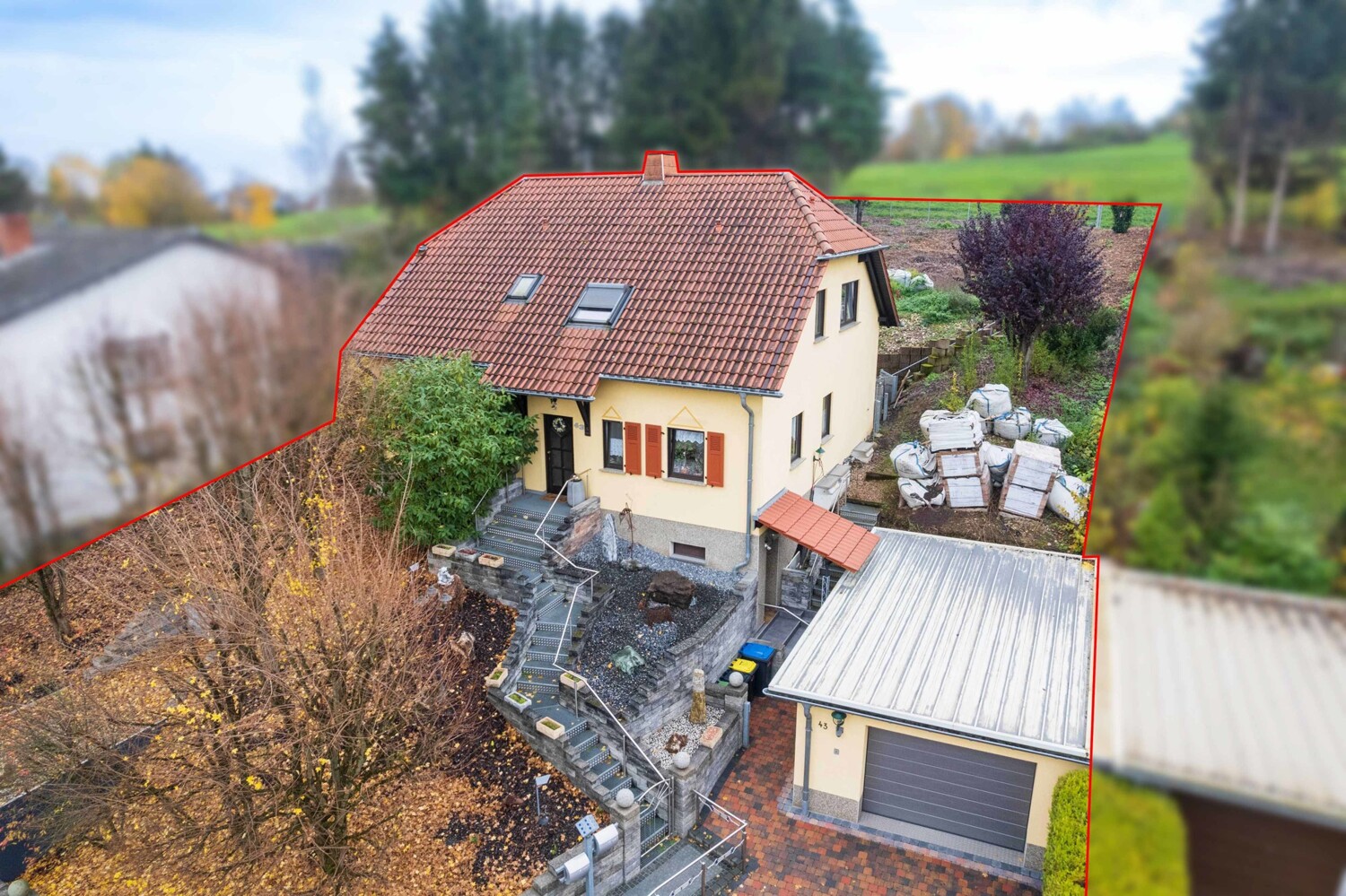Hochwertige Materialien, ausgeklügelte Architektur, ein hochwertiges Krüppelwalmdach, zwei abgeschlossene Wohneinheiten sowie zwei Garagen machen diese Immobilie interessant. Schon die äußere Ansicht wird Sie überzeugen, dank einer hochwertig angelegten Außenanlage besitzt ihr neues Zuhause eine ganz besondere Ansicht.