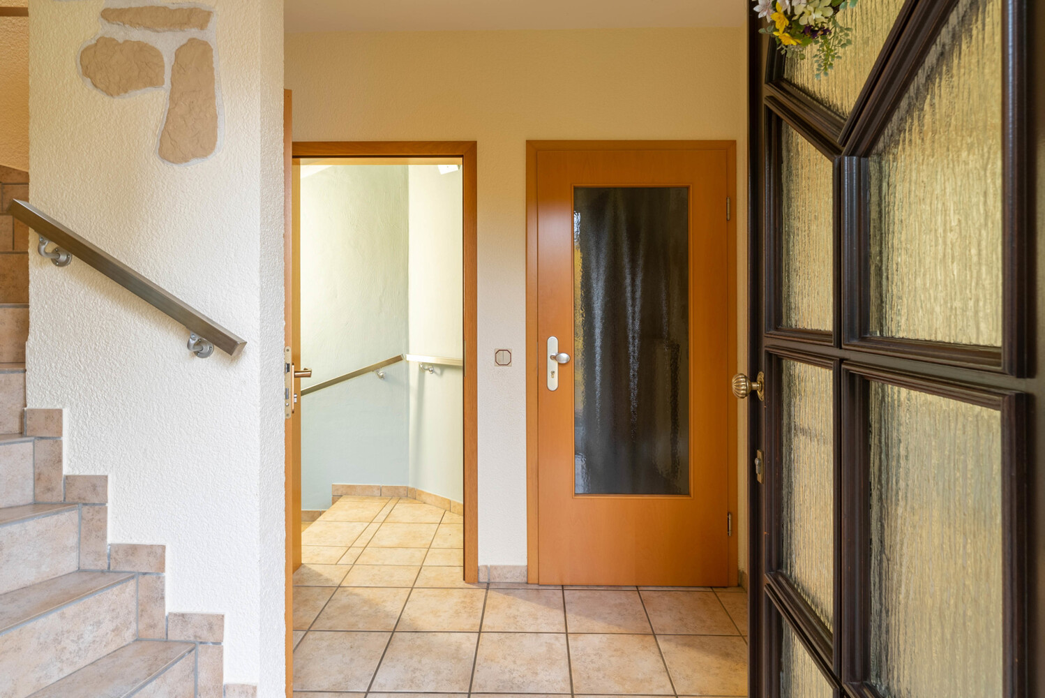 Es empfängt Sie ein einladend großzügiger Flurbereich, von hier aus erreichen Sie die zwei abgeschlossenen Wohneinheiten sowie das Kellergeschoss.