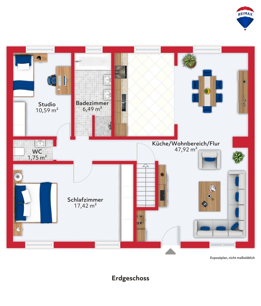 Linkerhand liegt der private Bereich der Immobilie.