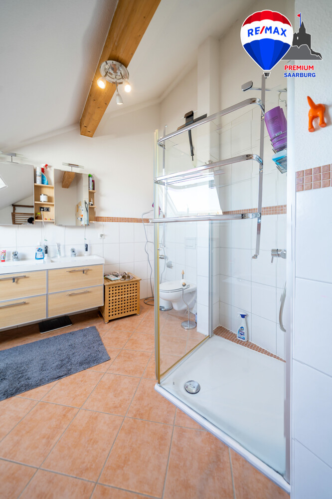 -1x Hauptbadezimmer mit begehbarer Dusche / WC und Badewanne , Doppelwaschbecken