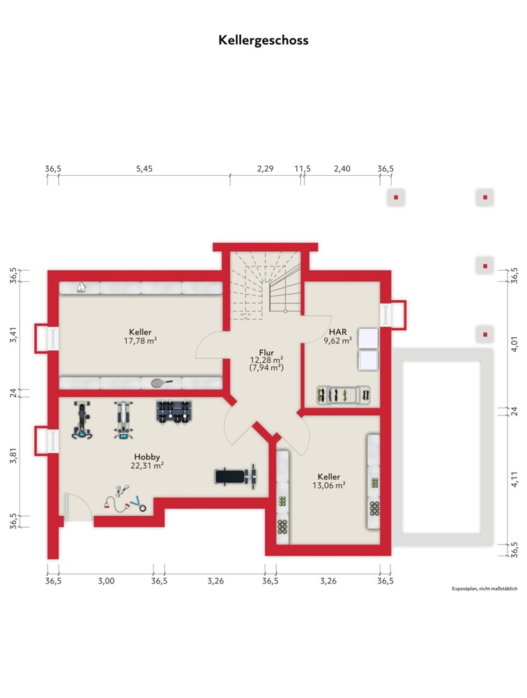 Zusätzlich können Sie eine zum Teil beheizte Kelleretage mit nochmal reichlich 70m² nach Belieben nutzen.