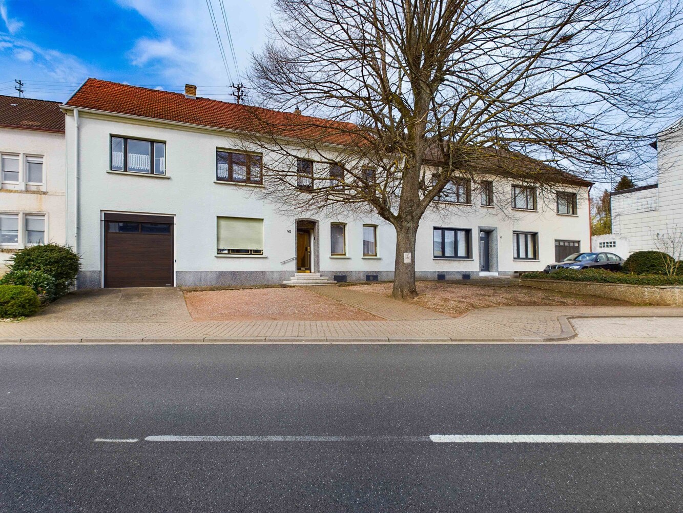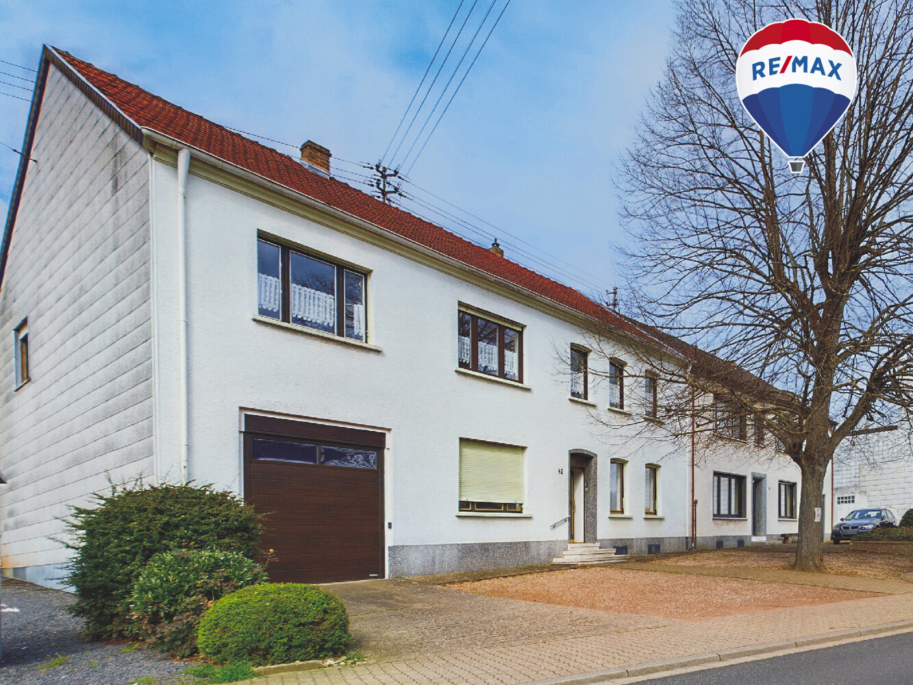 Diese Immobilie verfügt über eine Doppelgarage als ehemalige Scheune sowie zwei bis drei PKW-Stellplätze vor dem Haus.