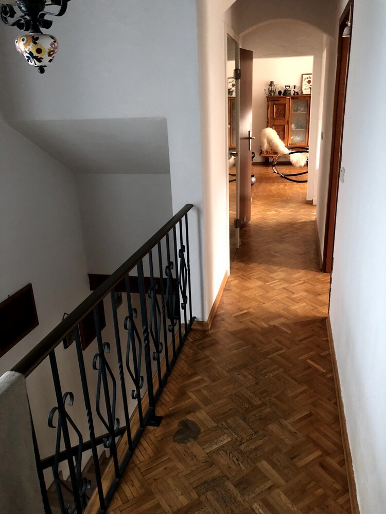 Das Gebäude ist momentan aufgeteilt in eine Ferien- bzw. Mietwohnung im Erdgeschoss (80 Quadratmeter) eine Mietwohnung im vorderen Ober- und Dachgeschoss (150 Quadratmeter) mit Dachterrasse. Sowie einem Wohnbereich über insgesamt 270 Quadratmeter (über drei Ebenen) - ohne den großen Balkon und den ausgedehnten Wintergarten (jeweils entlang der hinteren Gebäudeseite in Richtung Süden) mitzurechnen. Der Wintergarten übernimmt im Winter wie im Sommer seine Funktion als Dämmung und hält die Wärme im Haus bzw. im Sommer aus dem Haus.