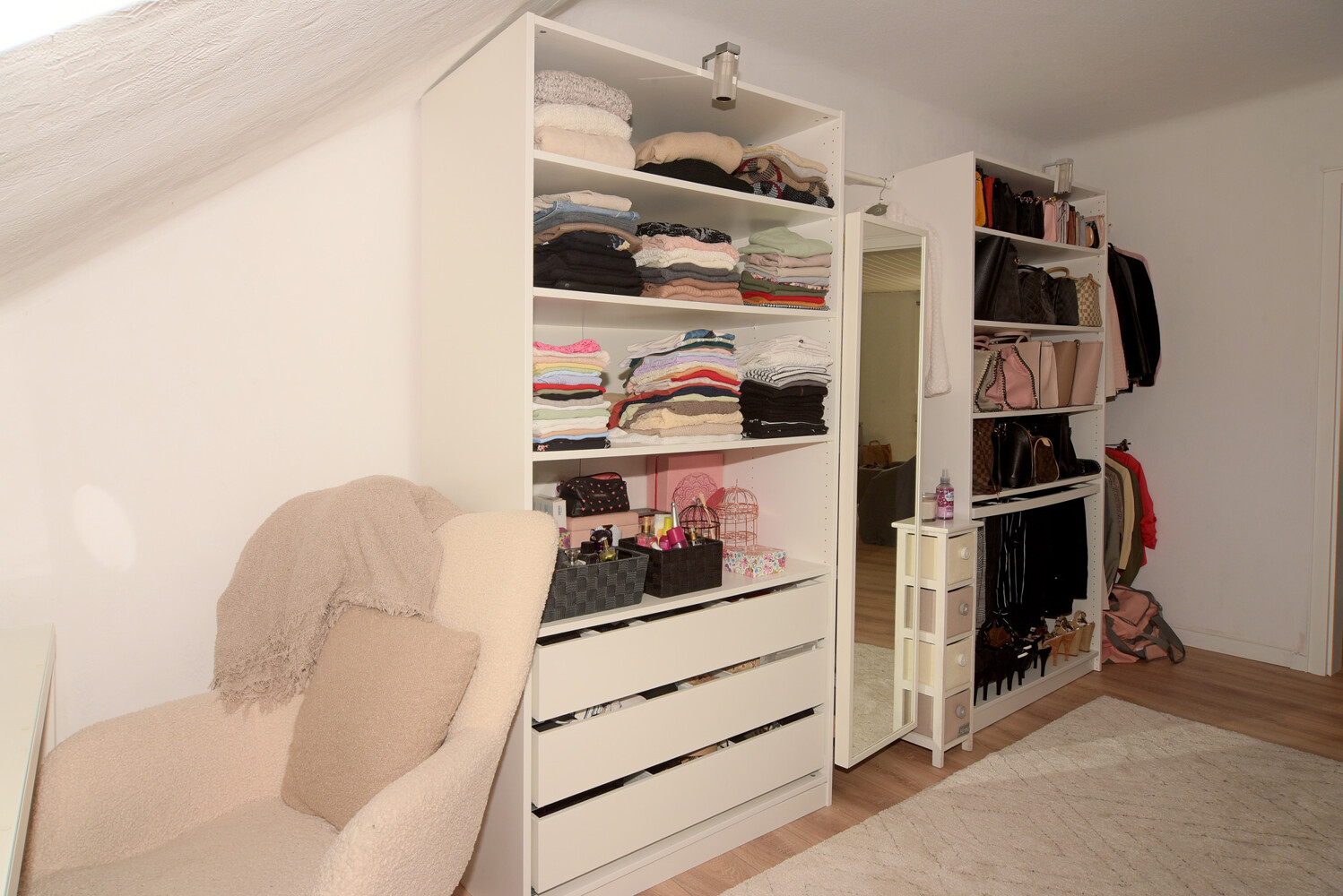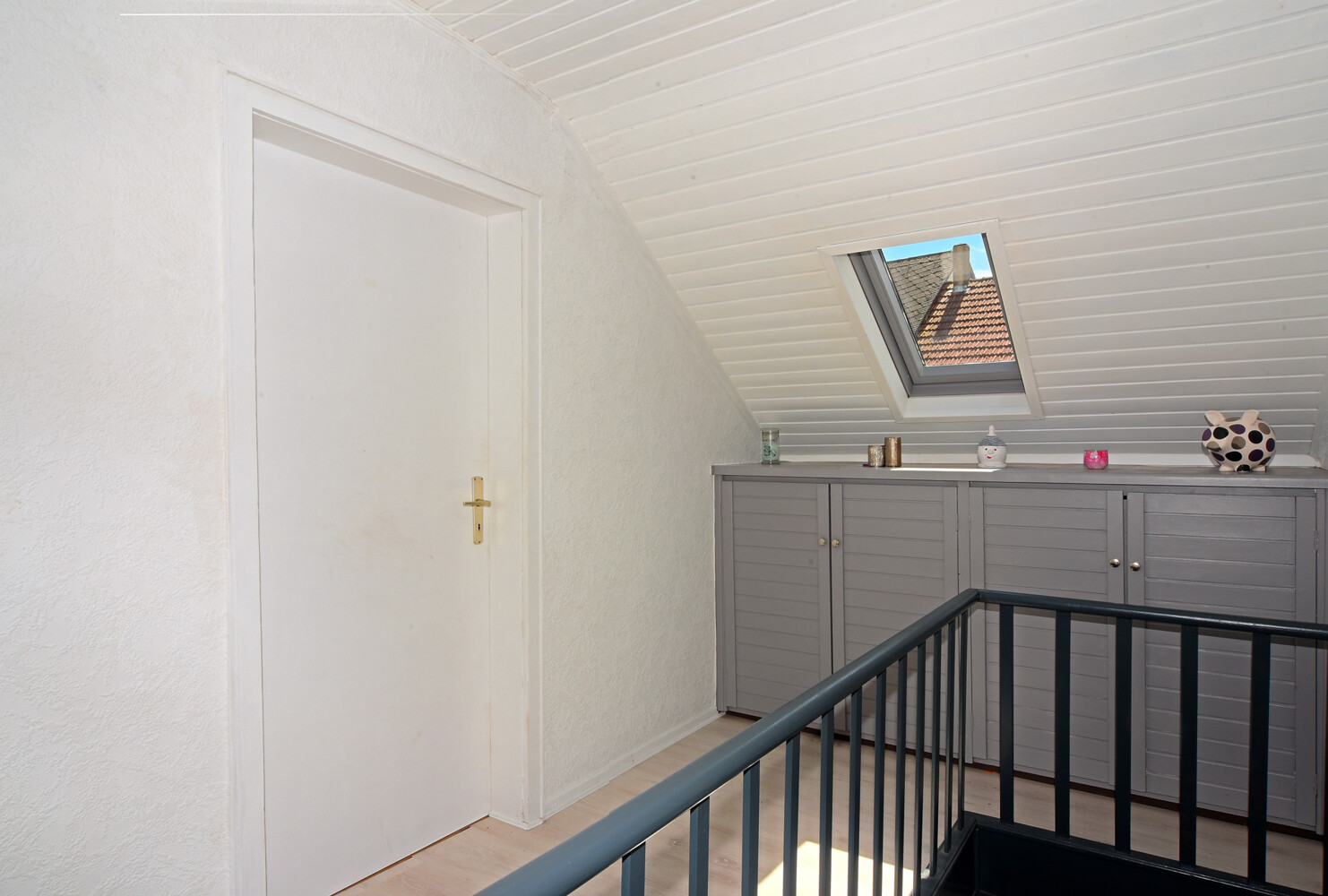 Wenn Sie in den ersten Stock gehen, dann gliedert sich der in ein Schlaf- und Ankleidezimmer wie auch ein Arbeits- und Sport-Zimmer, welche in permanenter Benutzung sind. Und es schließt sich ein 24 Quadratmeter messender Raum mit einer mehr als 6 Quadratmeter messenden Küche und einem etwa 5 Quadratmeter großem Badezimmer an. – Eine Einliegerwohnung und / oder Ferienwohnung oder zumindest die Möglichkeit die Familie zu erweitern… oder all das darin umzusetzen, was Sie brauchen…