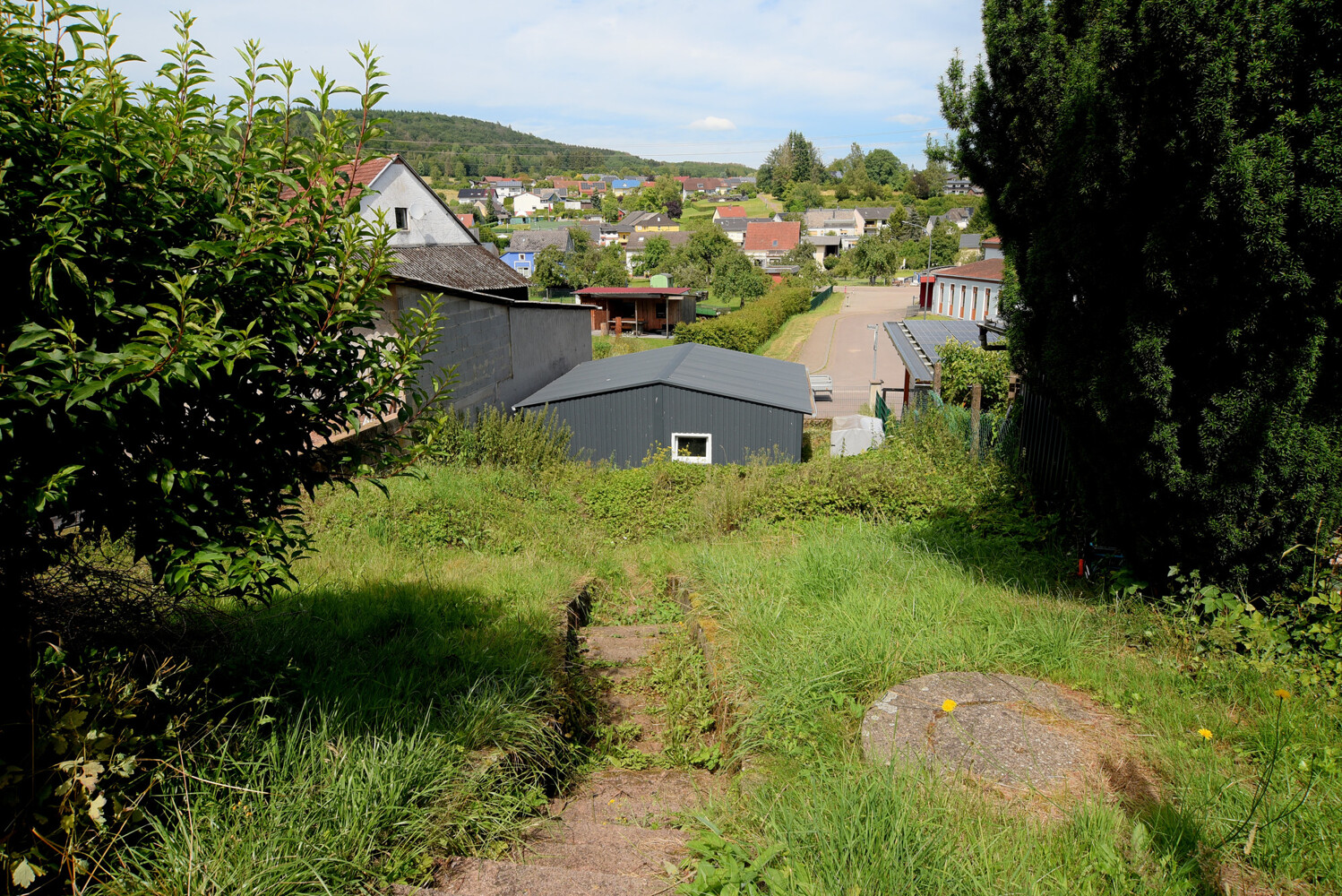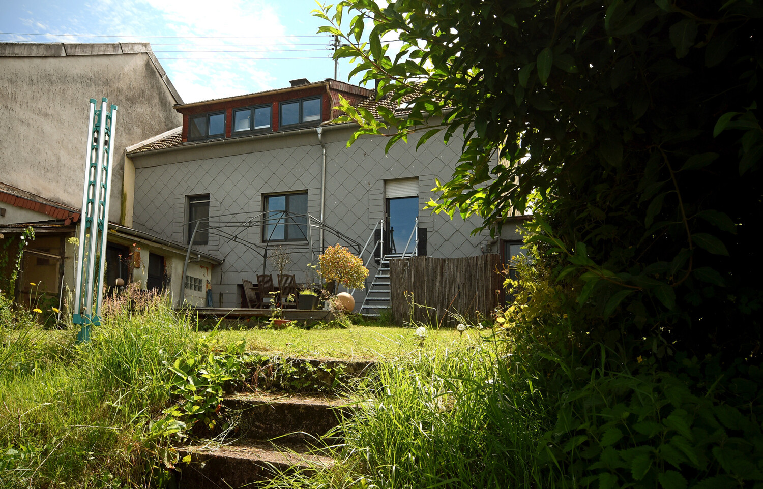 Der Garten hat noch nicht seine ganze Pracht entfalten können – aber umso besser für Sie als neuer Eigentümer: wollen Sie hier noch etwas "abschneiden" für die Gewerbefläche – wollen Sie zum Selbstversorger werden und eine schöne Terrassen-Folge installieren oder wollen Sie hier den Abenteuer-Spielplatz für Ihre Kinder oder Haustiere etablieren. Sie können – auf Grund der aktuell nicht festgesetzten Ausrichtung – frei entscheiden. Auch lässt sich das gesamte befestigte Areal auf der Gebäude-Rückseite mit Weg zur Wiesenstraße noch besser ausbauen oder verändern. So wie Sie das wünschen. Aktuell fühlen sich hier zwei Zwergkaninchen mit eigenem Stall und Auslauf sehr wohl.