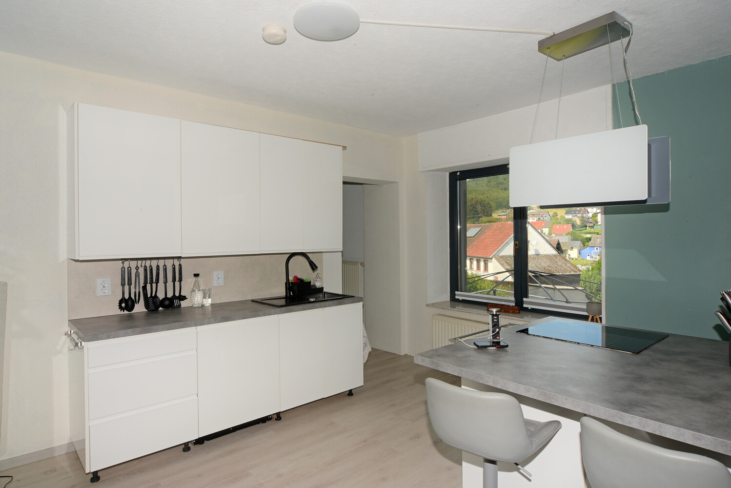 Ein gebrauchtes Haus, dessen Außenhülle erhalten wurde und – da lernt man schnell, wie dumm es ist mit Vorurteilen ein Haus zu betreten – dessen Innenräume klar und deutlich vom Heute geprägt sind. Bei der Besichtigung waren wir Immobilienmakler und selbst unser Fotograf geflasht. Denn das, was hier an Heute in der Einrichtung und Ästhetik der Möblierung wie auch des Um- und Einbaus realisiert wurde, ist wirklich beeindruckend.