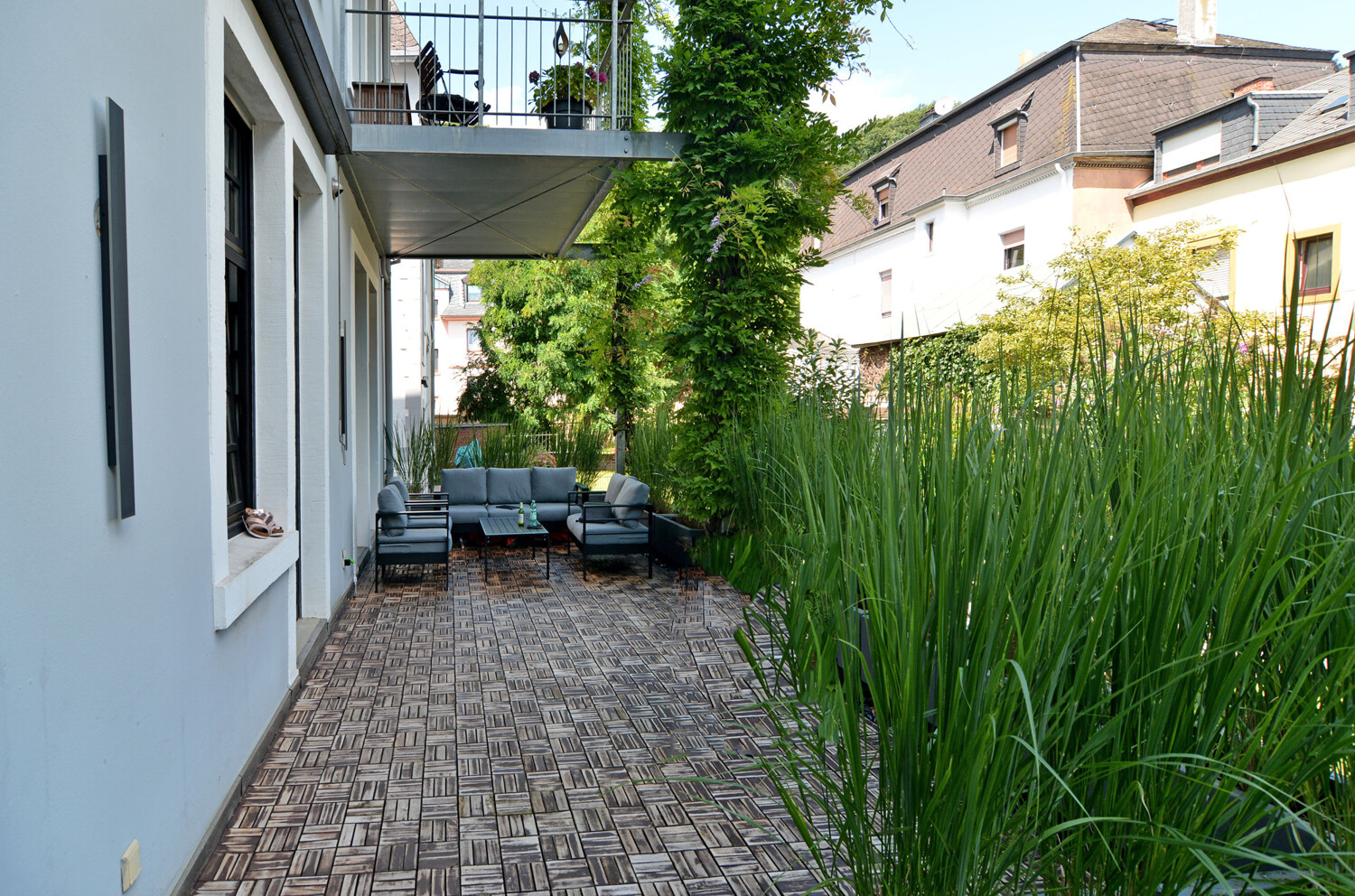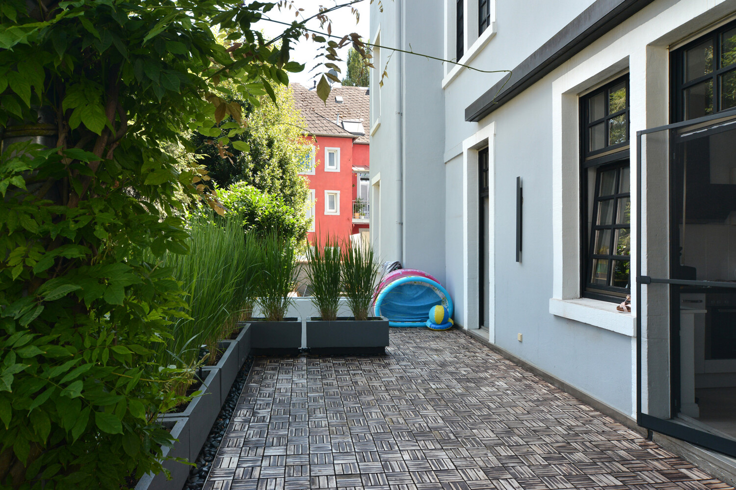 Der 33 m2 große Terrassenboden wurde letztes Jahr mit Akazienholz neu ausgelegt.