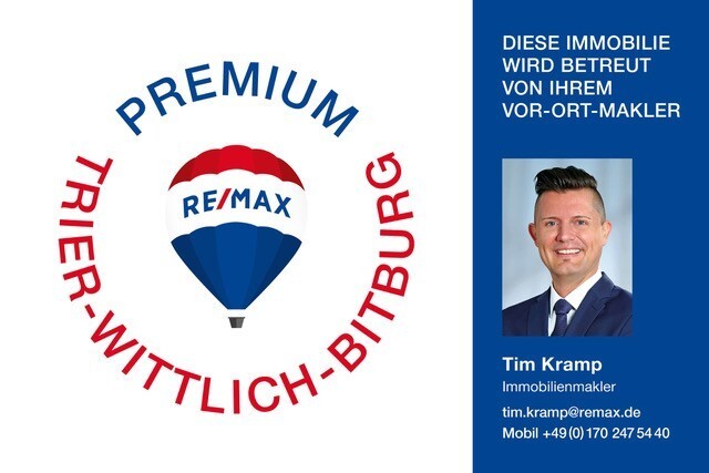 Bitte beachten Sie, dass eine Präsentation nur nach vorhergehender Kontaktaufnahme mit Tim Kramp möglich ist. Ebenso werden Besichtigungen nur nach dem Ausfüllen unseres "RE/MAX Besichtigungsprotokolls", welches wir Ihnen gerne vorab als Datei zusenden, durchgeführt.