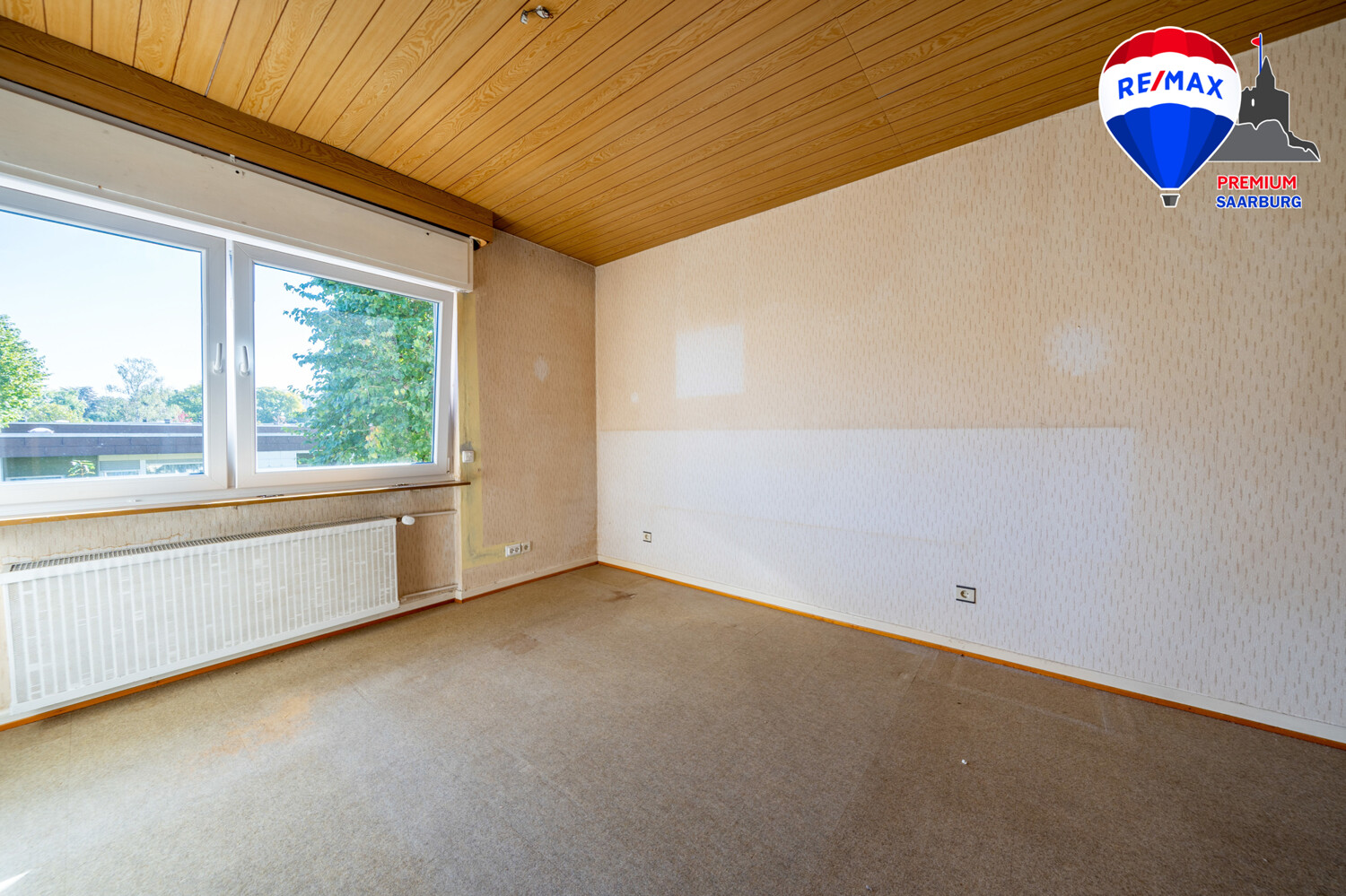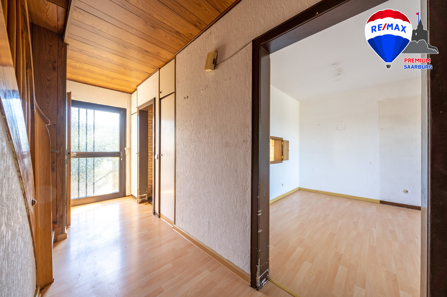 Im Eingangsbereich gelangt man über eine Holztreppe in das Obergeschoss mit drei Schlafzimmern und Tageslichtbad mit Wanne. In einem der Schlafzimmer ist eine kleine Besonderheit aufzufinden: die zum Garten ausgerichtete Loggia mit ihrem unverbaubaren und besonders schönen Ausblick auf Trier und Umgebung. Zusätzlich zu den genannten Wohnräumen befinden sich im Keller weitere Nutzflächen, z.B. der Hobbyraum. Man kann sogar durch diesen über eine Außentreppe zum Garten gelangen.