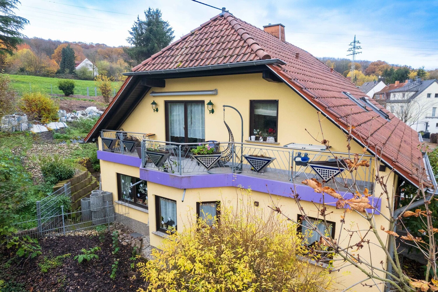 Dieser ist aufgrund der Grundstückslage höher, als die vorhandene Terrasse im Erdgeschoss gelegen. Das Highlight ist die Aussicht auf das angrenzende Feld, ein unverbaubarer Blick ins Grüne. Hier können Sie absolut entspannen und zur Ruhe kommen.