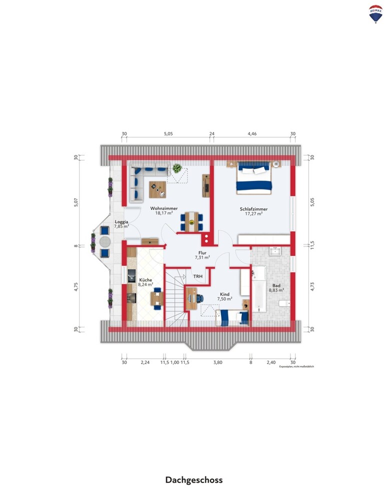 Abgerundet wird dieses Wohlfühlzimmer mit dem Zugang zur Loggia, hier können Sie Ihre Freizeit genießen.