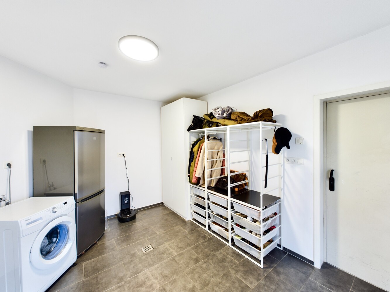 In dem sich an das Wohnzimmer anschließenden Hauswirtschaftsraum haben Sie ausreichend Platz für Waschmaschine, Trockner und Vorrat.