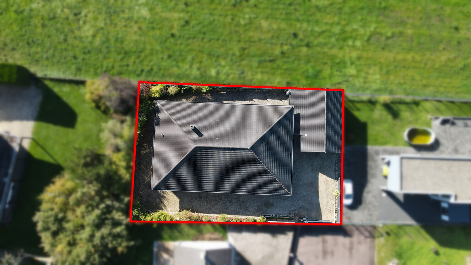 Auf Ihr Grundstück gelangt man nur über ein elektrisches Einfahrtstor, welches sich per Fernbedienung öffnen lässt.
