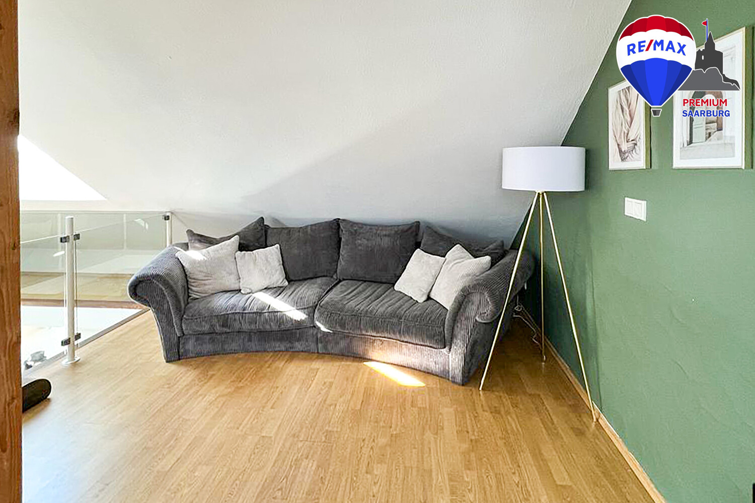 Ein weiteres Highlight der Wohnung stellt die offene Galerie im Dachgeschoss dar, die man über die schicke schwarz-weiße Wendeltreppe aus dem Wohnzimmer erreicht. Der zusätzliche Bereich mit seinen Dachschrägen schafft Gemütlichkeit und bietet zahlreiche Möglichkeiten der Nutzung.
