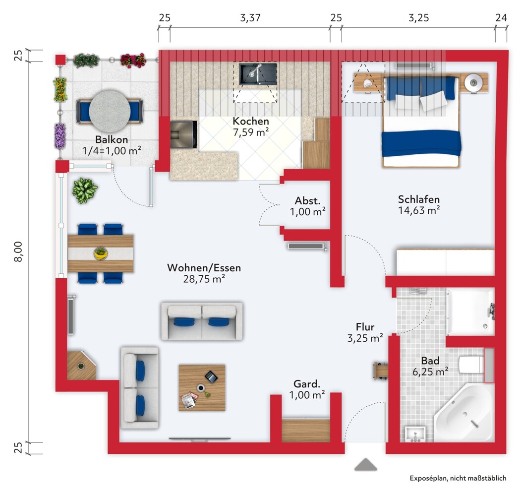 So ist die Wohnung aufgeteilt: